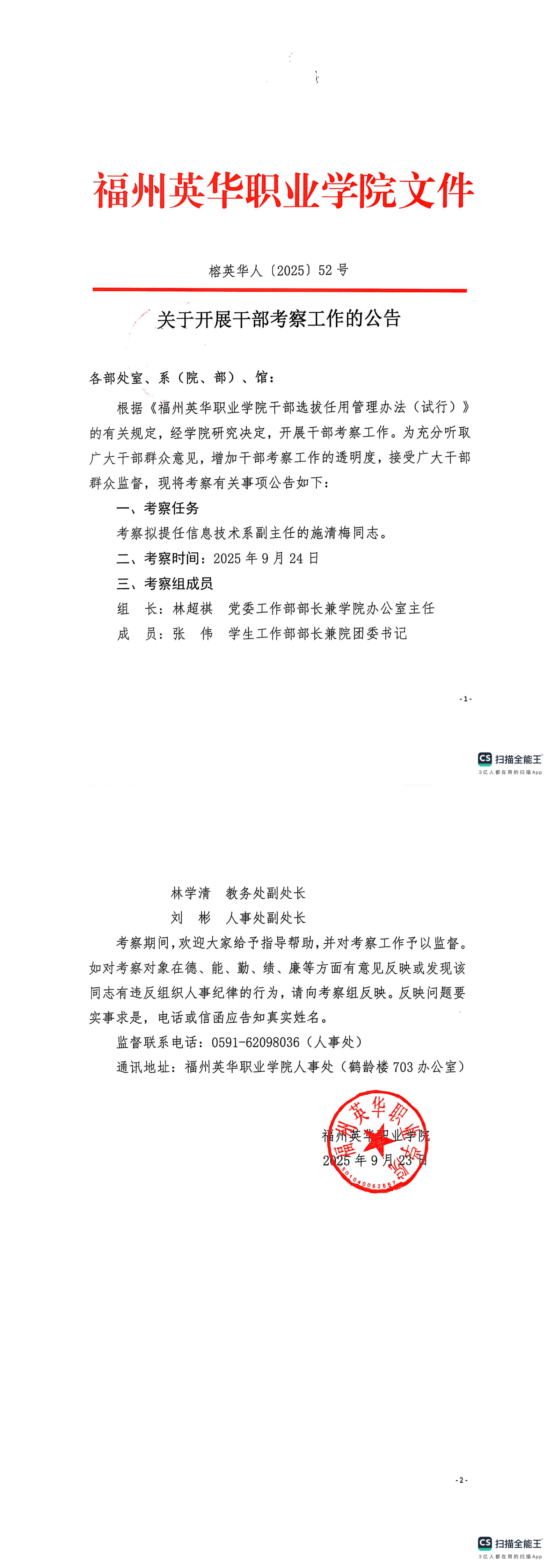 关于开展干部考察工作的公告