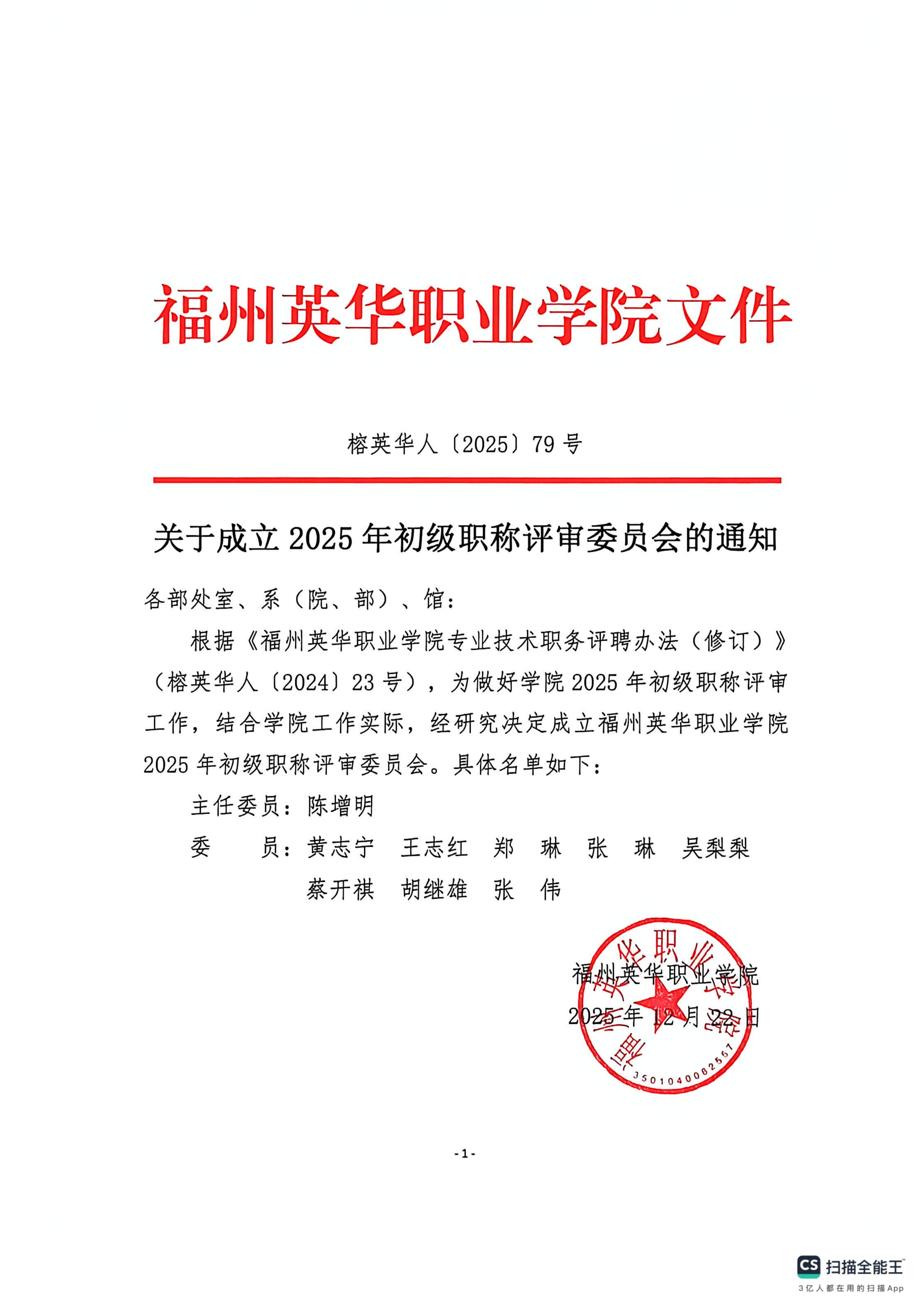 关于成立2025年初级职称评审委员会的通知