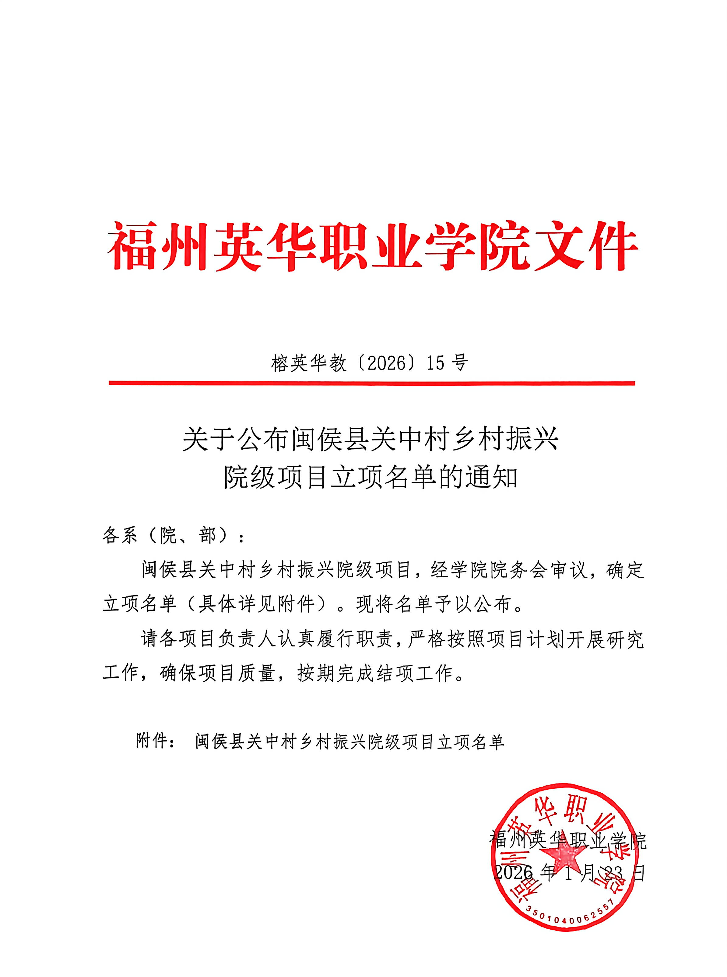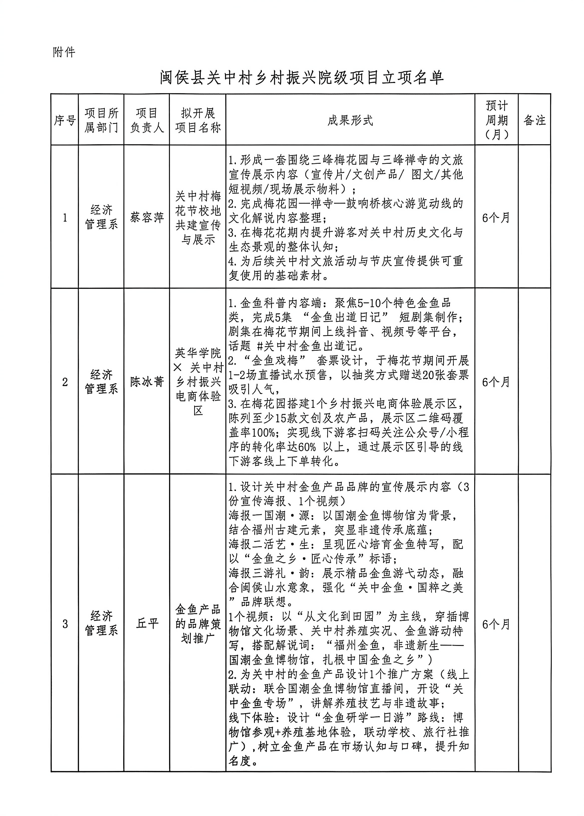 关于公布闽侯县关中村乡村振兴院级项目立项名单的通知