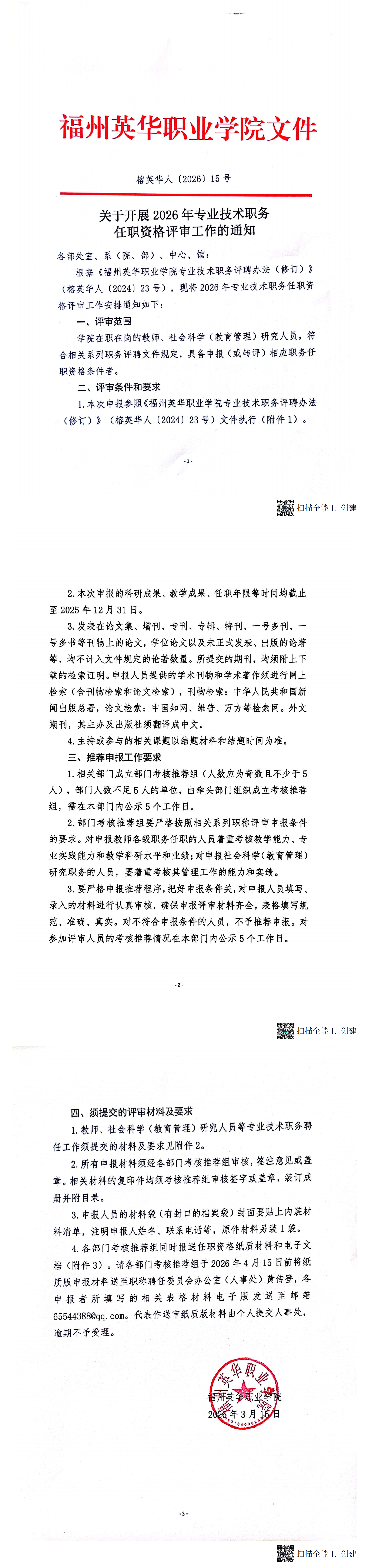 关于开展2026年专业技术职务任职资格评审工作的通知