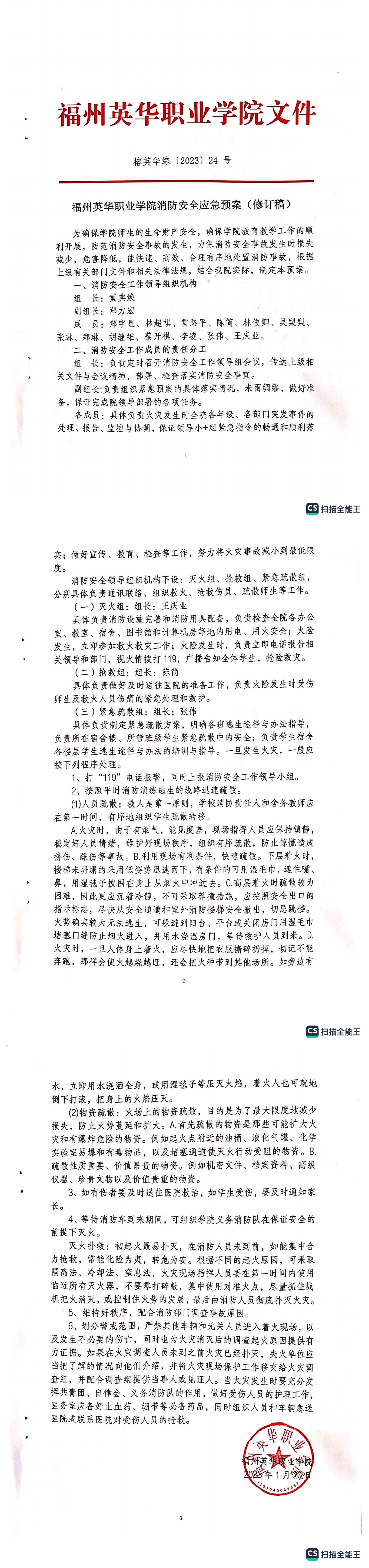 福州英华职业学院事故灾害突发事件应急预案(修订)