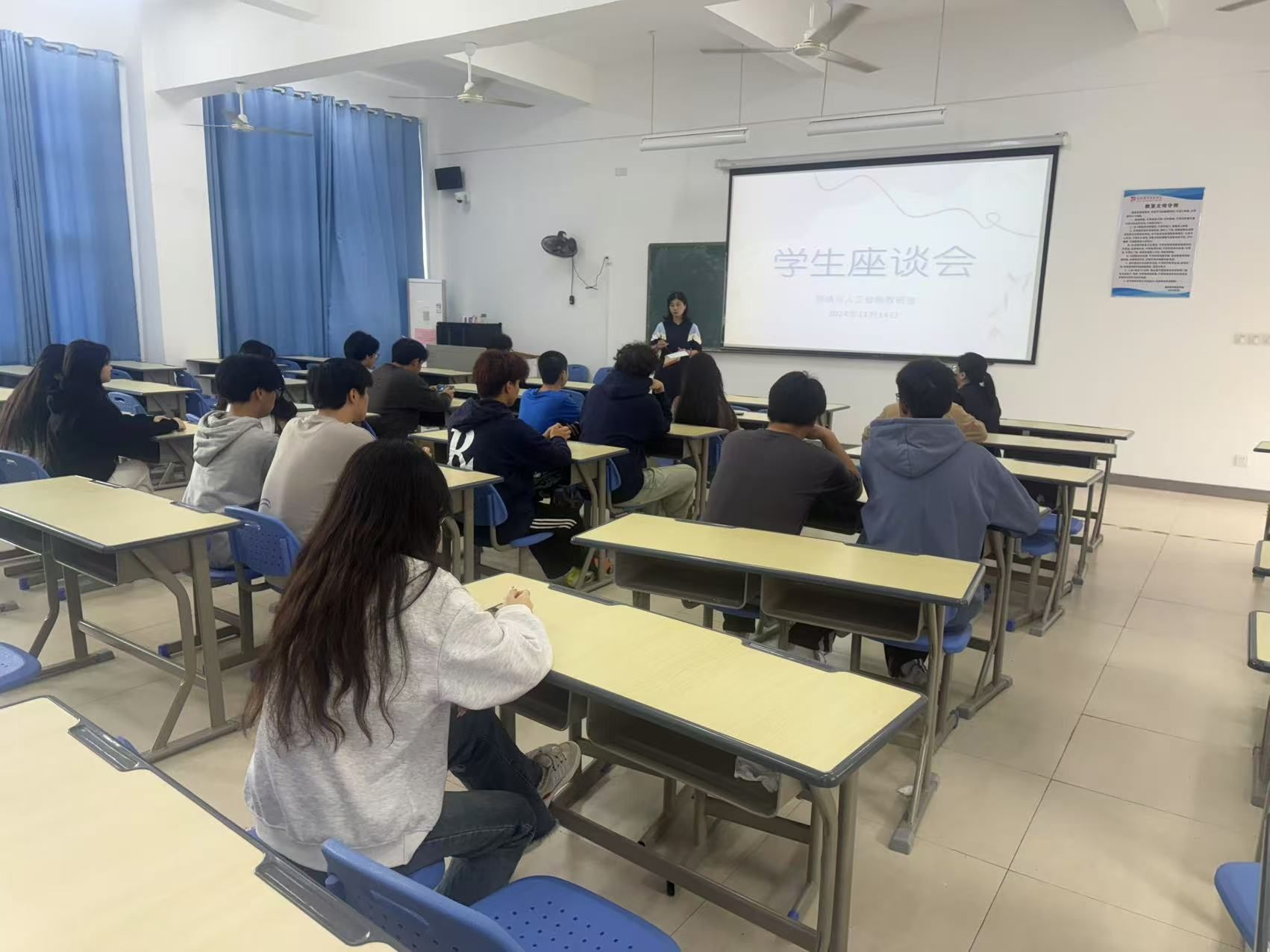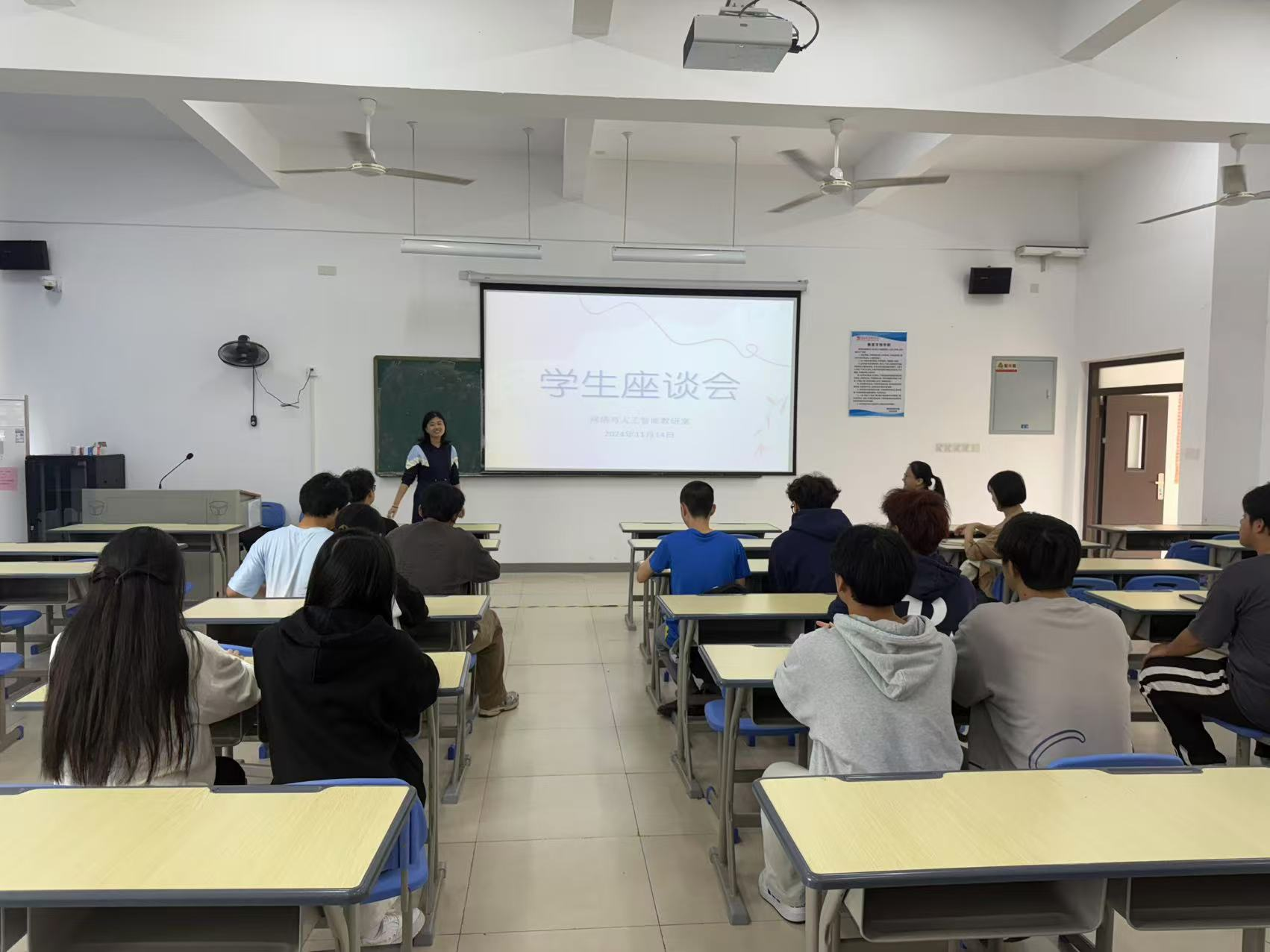 为了深入了解学生对教学活动的反馈,进一步优化教学内容与方法,提升教学质量,网络与人工智能教研室于2024年11月14日在科学楼1202成功举办了一场期中教学学生座谈会。本次座谈会旨在搭建一个开放、直接的沟通平台,鼓励学生积极表达学习体验与建议,促进师生之间的深入交流与理解。