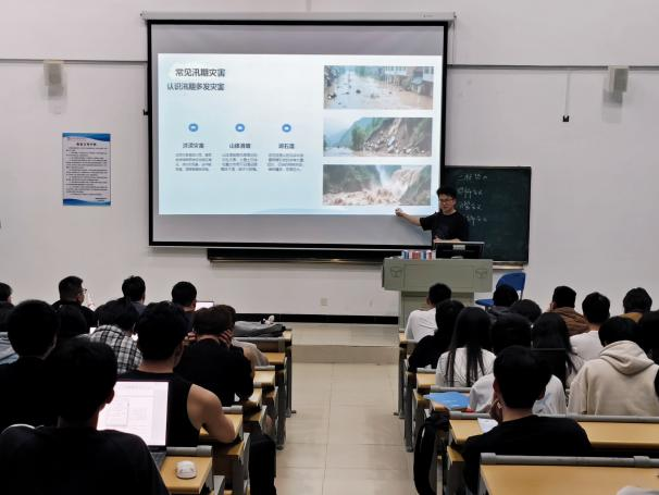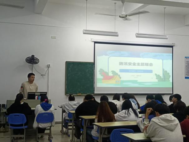 会上,辅导员们向同学们普及了防汛知识、科学避险方法、急救措施等,并介绍了地质灾害和气象风险的成因、预警信号以及紧急避险措施。如制作简易救生筏、寻找高处避难所等。同时结合实际案例,让学生深刻认识到防汛安全的重要性。提醒学生们时刻保持高度警觉,密切关注天气预报和灾害预警信息,确保做到早预防、早准备、早行动。