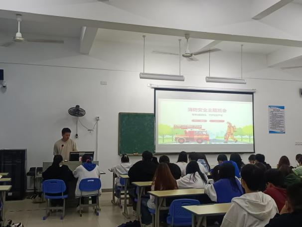 会上,辅导员借助视频、案例剖析等形式,全方位普及消防安全知识。播放的火灾警示片,以触目惊心的场景,让同学们深刻认识到火灾的巨大危害。随后,辅导员深入讲解消防安全的关键知识。从防火的基础措施讲起,比如日常保持通道畅通、不私拉乱接电线等;接着分析常见的火灾原因,像电气故障、明火使用不当等,帮助同学们识别身边潜在的火灾隐患。对于火灾发生后的注意事项,着重强调保持冷静,切勿惊慌失措。详细介绍弯腰低姿前行、用湿毛巾捂住口鼻等实用技巧,以应对烟雾弥漫的危险环境,传授灭火器的正确使用方法,“一提、二拔、三握、四压”,确保每位同学都掌握在危急时刻自救、互救的基本消防技能。