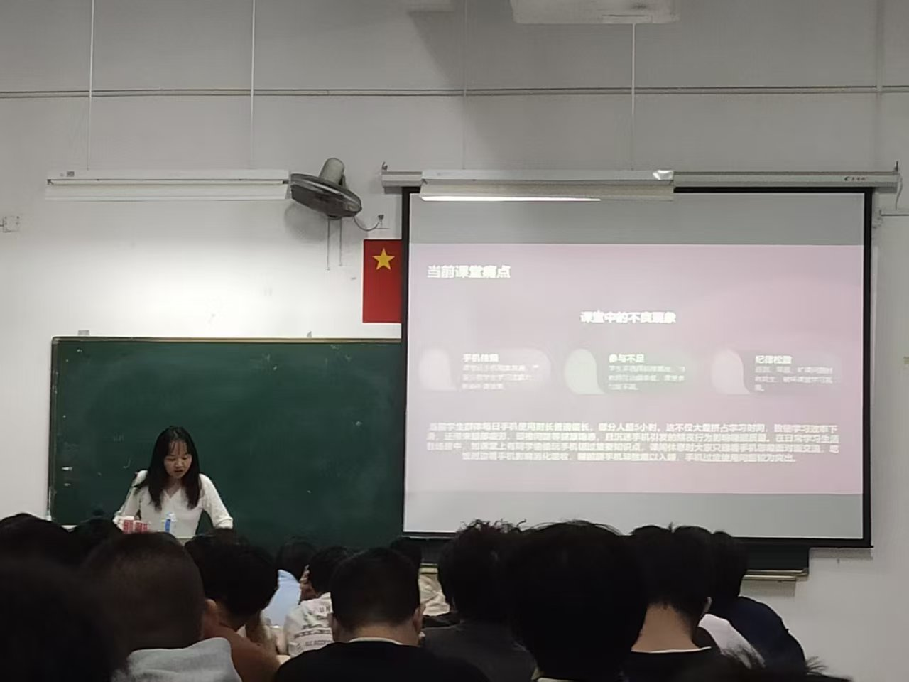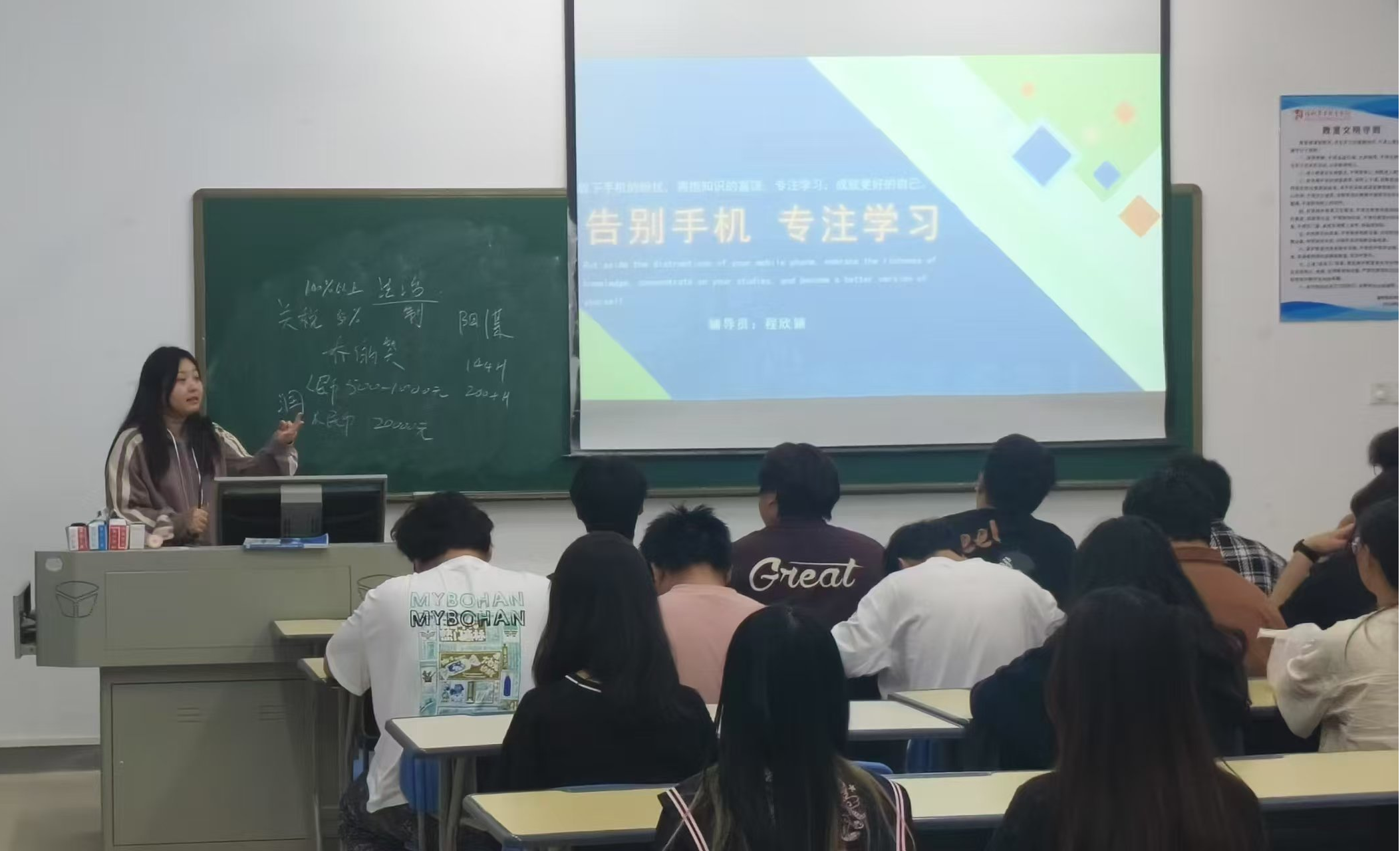 会上,辅导员们通过展示调研数据和案例,直观呈现过度使用手机对学业和身心健康造成的负面影响,引发同学们的强烈共鸣。随后,同学们围绕“手机对学习生活的影响”展开热烈讨论。辅导员们也分享了诸多有效的应对办法,鼓励同学们培养自律意识,合理规划使用手机的时间。针对新发布的《福州英华职业学院关于进一步加强教风与学风建设的实施方案(试行)》辅导员从学生层面进行解读,鼓励同学们养成良好习惯,相互监督提醒。同时辅导员积极牵头,组织以班长、团支书、学习委员为核心的主要学生干部团队,引导学生前排就坐,协助任课老师课前点名,记录学生课堂表现情况。