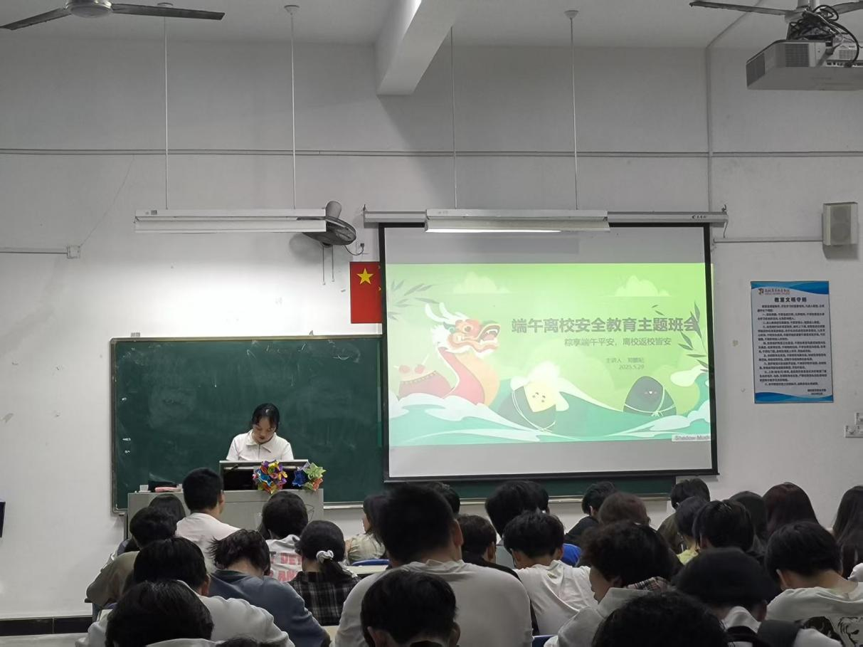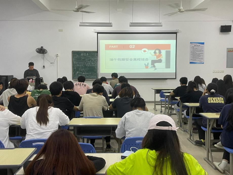 会上,辅导员围绕交通安全、人身财产安全、网络信息安全等核心内容展开讲解。通过真实案例警示、互动问答等形式,重点强调了离校途中的乘车规范、假期外出的自我防护要点,以及防范电信诈骗的具体措施。同时,针对端午期间可能出现的极端天气,辅导员细致讲解了防汛、防溺水等安全知识,引导学生树立“安全第一”的责任意识。此外,班会还对假期宿舍卫生、水电安全等事项作出明确要求,确保校园安全管理无死角。
