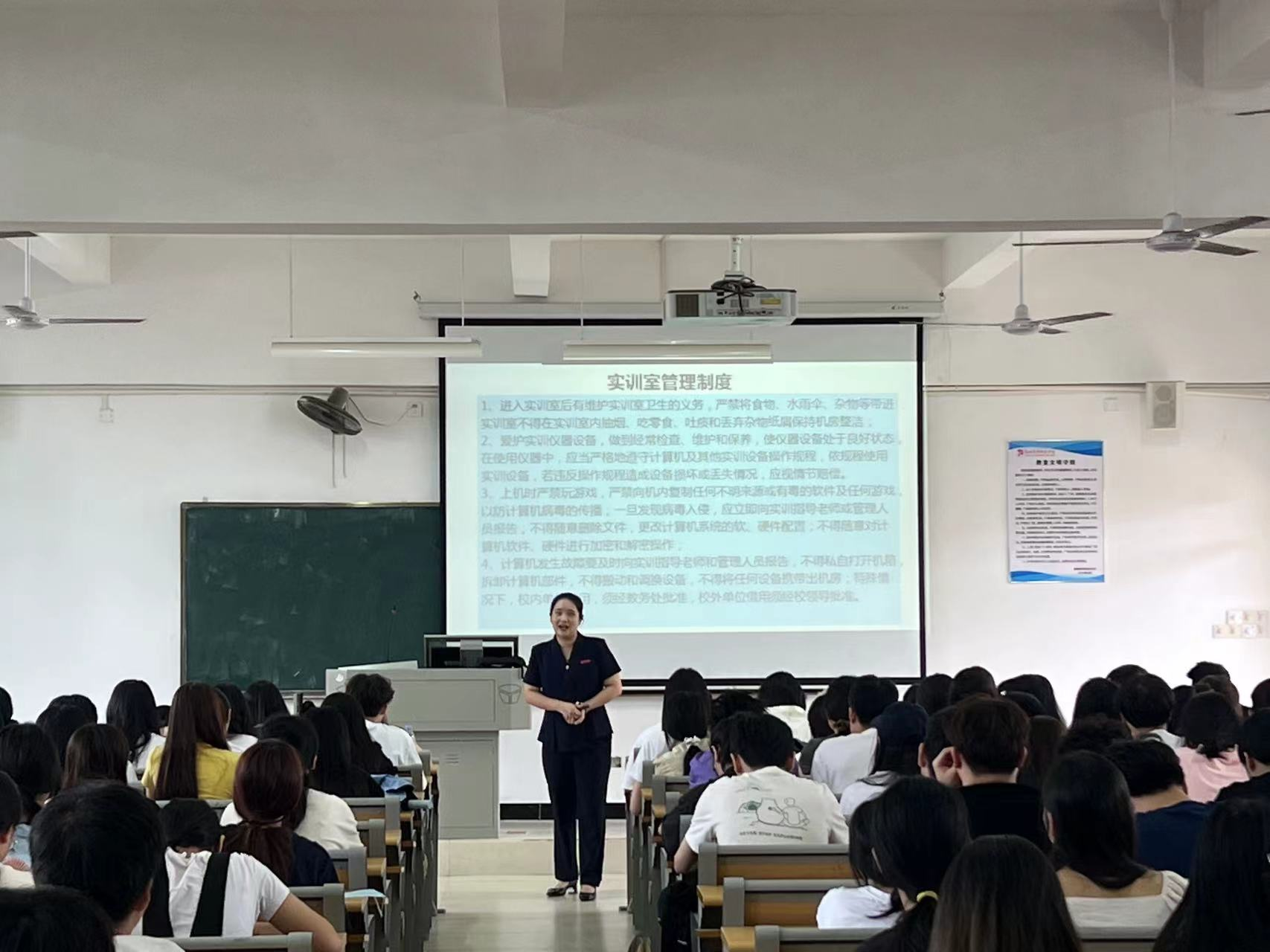 此外,在介绍会也明确了实训室管理制度,强调了实训室作为学生实践操作的重要场所,对专业技能培养起着至关重要的作用。需要学生保持实训室环境整洁,按照实训指导老师的要求,规范操作实训设备,营造一个安全、有序的实训环境,以促进学生专业技能的全面发展。