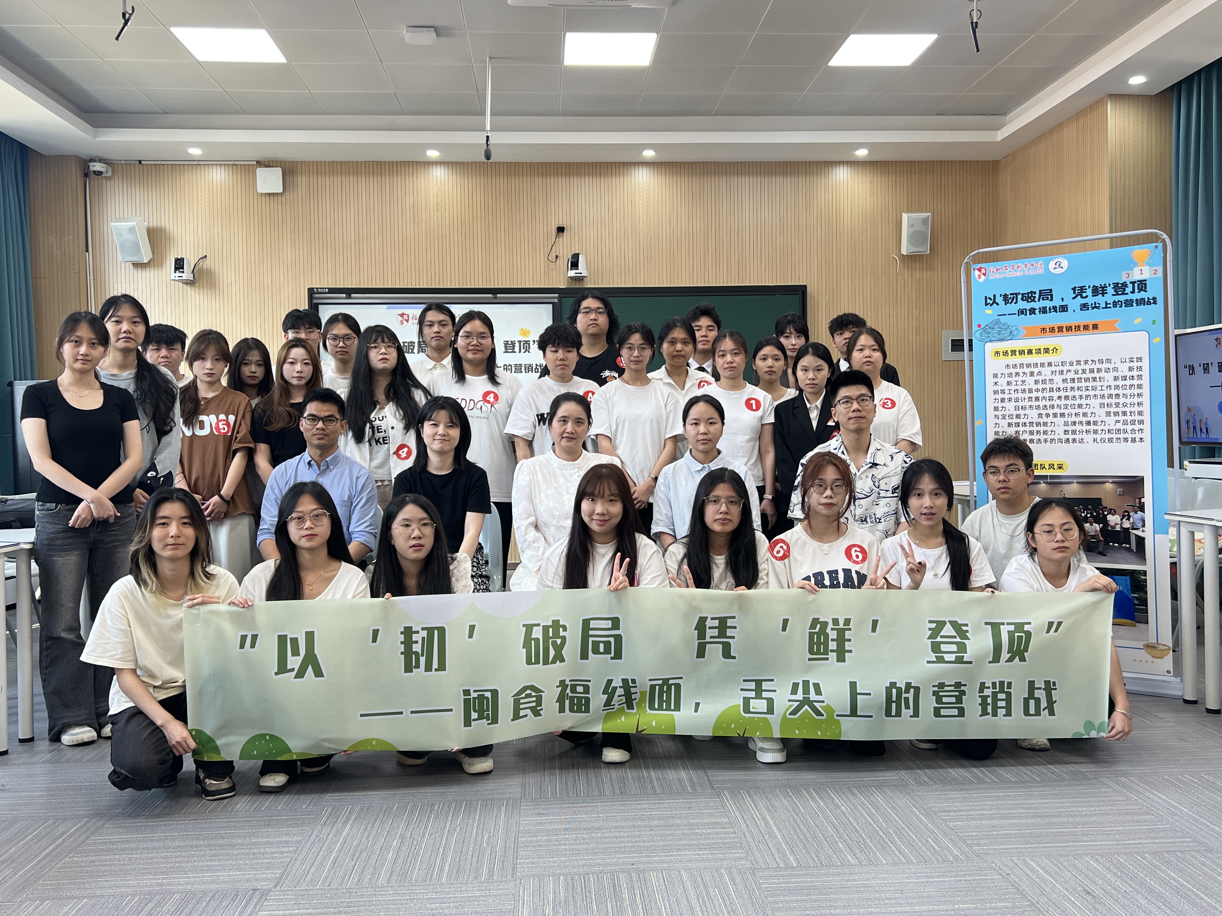 2025 年 5月,以 以“韧”破局,凭“鲜”登顶为主题的市场营销技能周比赛圆满落幕。本次比赛聚焦埔前村 “闽食福” 线面品牌,旨在通过学生的创意策划,为传统美食注入新活力,共有 7 支队伍历经层层选拔,脱颖而出进入决赛,展现了当代营销学子的卓越风采。