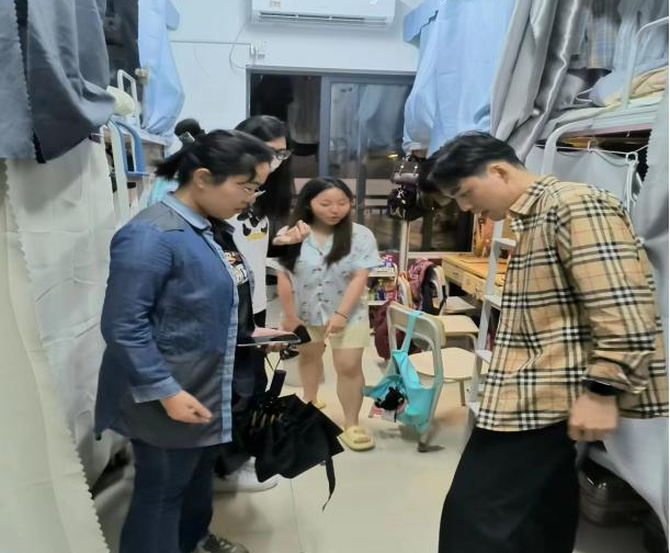 为了加强校园安全管理,提高大学生的消防安全意识,营造整洁、文明的宿舍环境,6月5日,经济管理系学生支部书记黄锹带领辅导员深入学生宿舍,在端午节前开展了消防安全检查和文明宿舍评选检查工作。