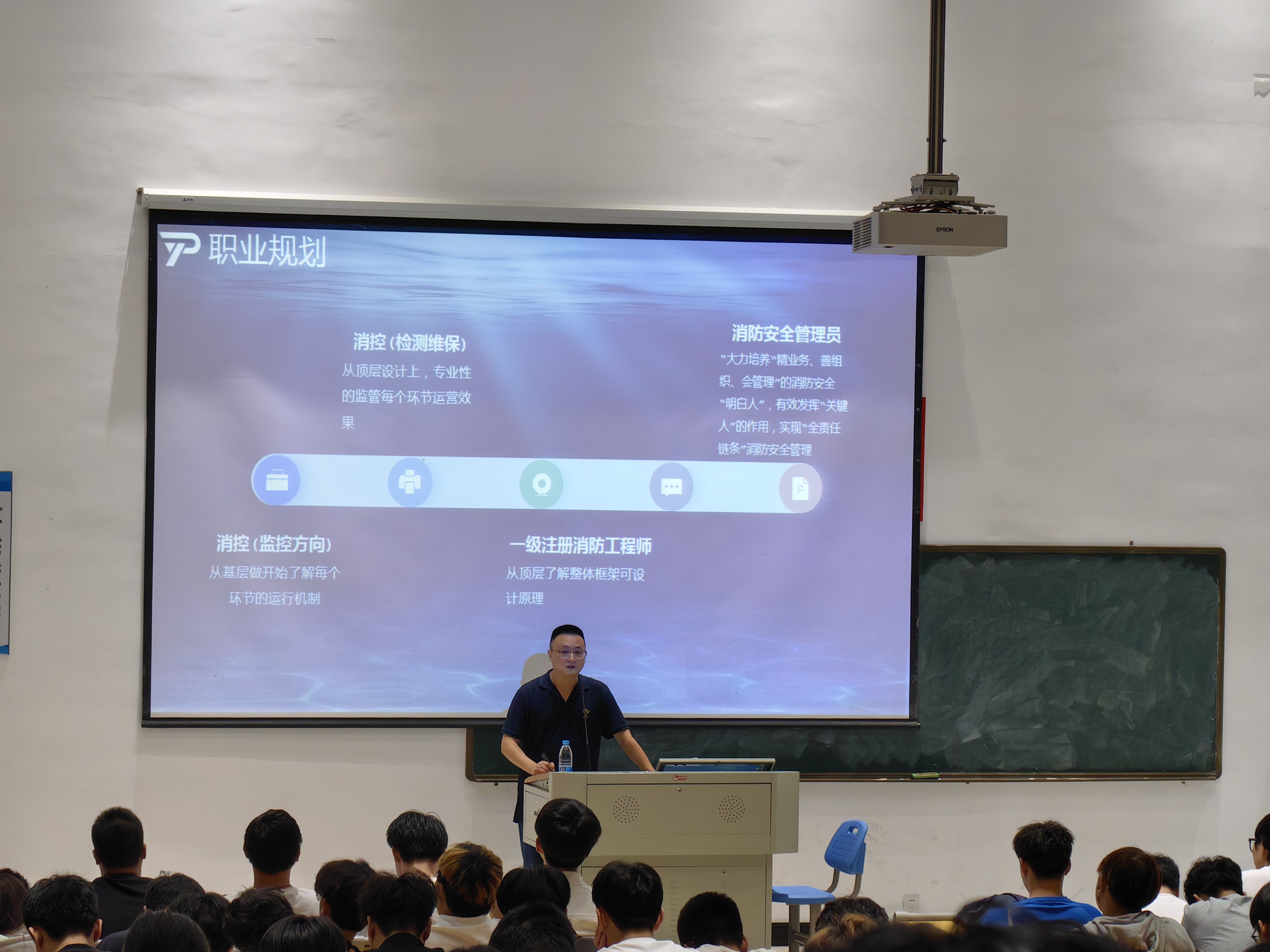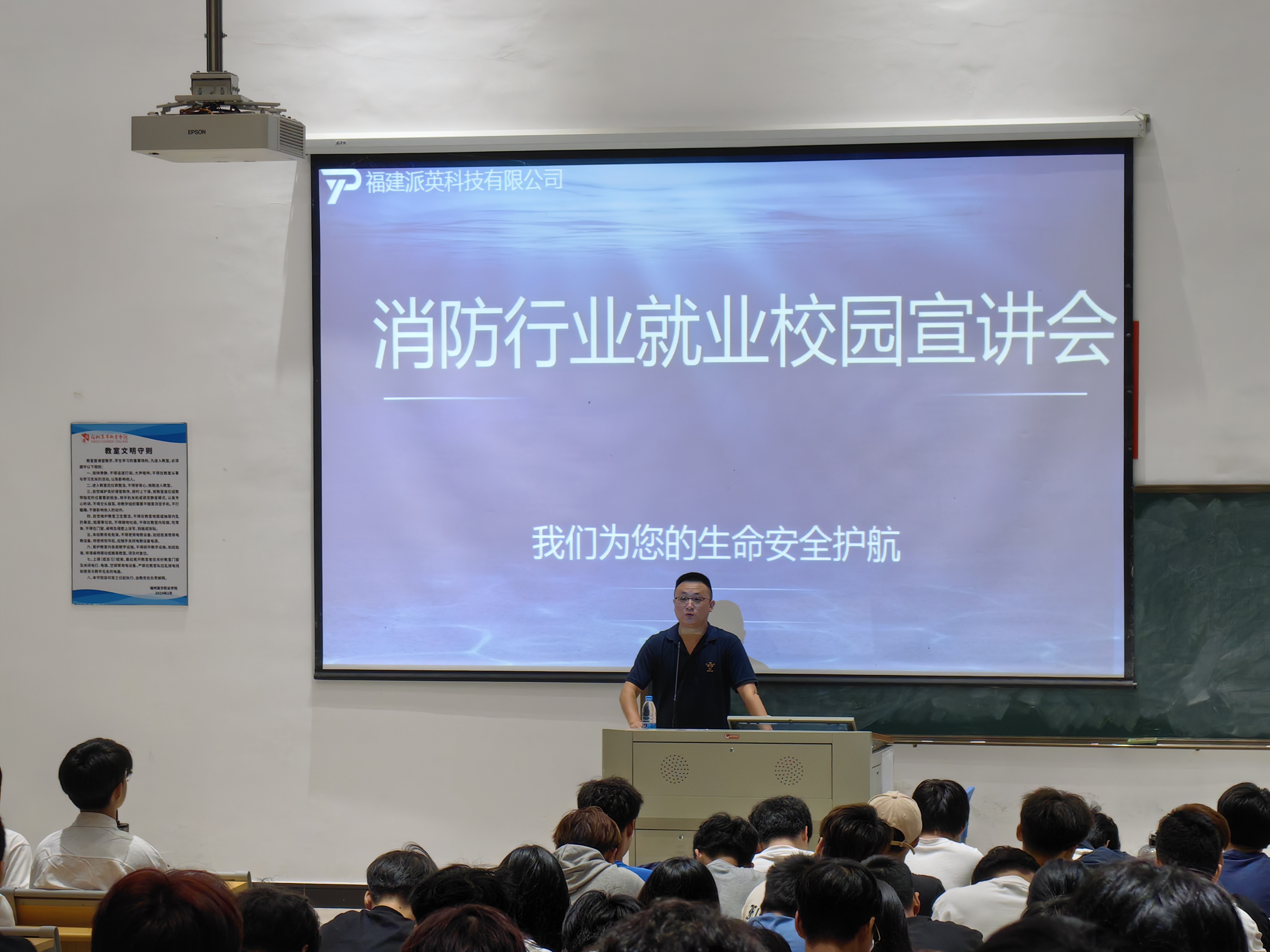 2024年5月22日,福建派英科技有限公司来我校进行企业宣讲活动,针对以下几个方面进行展开讲解:1.消防政策2.岗位介绍3.薪资福利4.消防设施操作工程师5.就业指导。
