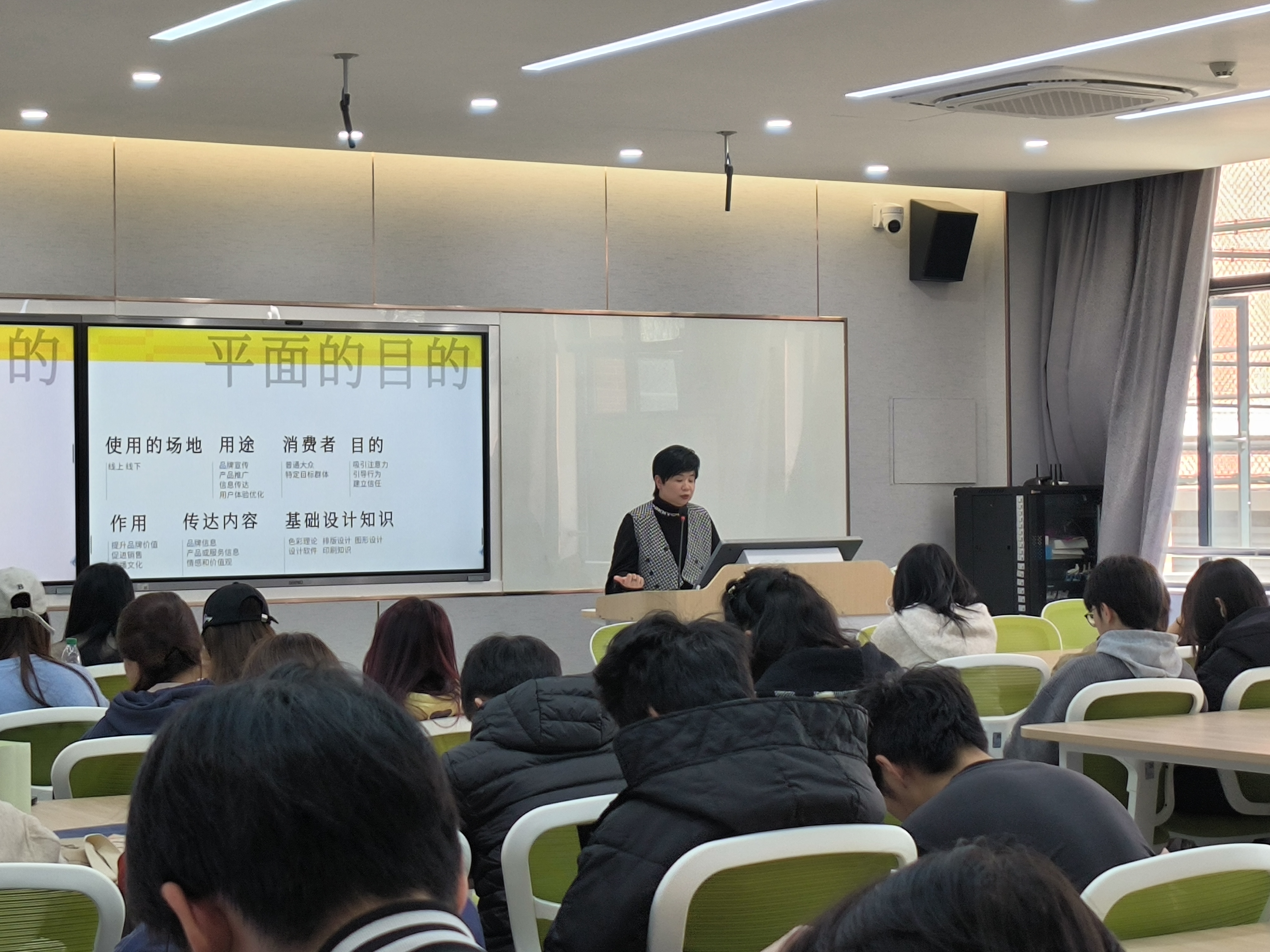 讲座在我校实训楼的多媒体教室举行,吸引了众多艺术设计专业的学生和教师参与。张静女士凭借其丰富的行业经验和独到的见解,深入浅出地讲解了设计行业的前沿动态、企业对人才的需求以及设计师在职业生涯中应具备的核心能力。