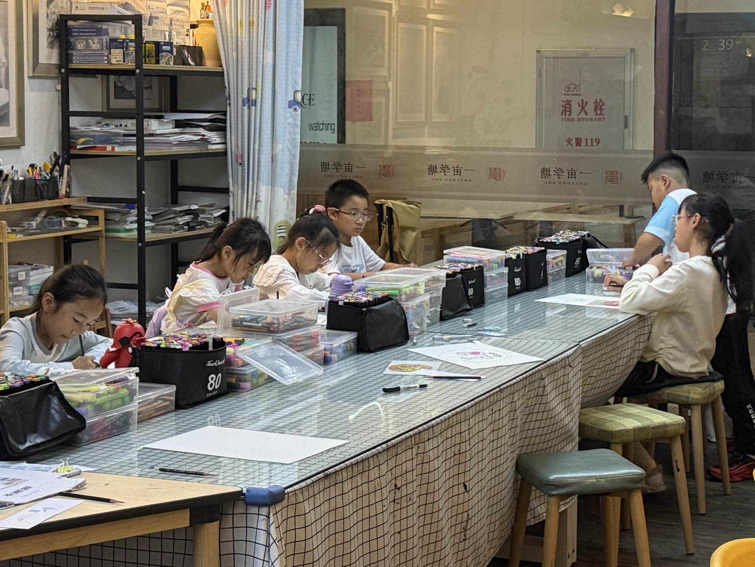 一亩学塘是福州市仓山区知名艺术培训机构,旗下画室品牌“小熊艺术农场”专注少儿及青少年艺术教育,开设幼少儿创意绘画、魔写(创意线描)、动漫设计、素描及美术中高考辅导等课程,以“趣味激发潜能,专业赋能成长”为核心理念。代表团在机构负责人陪同下,实地参观了小熊艺术农场的创意绘画教室、动漫工坊及中高考特训空间,深入了解其特色教学模式:通过个性化课程设计(如服装设计、公共文化主题创作)与多元化实践(摄影、魔写技法),激发学生艺术创造力;融合“兴趣导向”与“专业升学”需求,2025年新增“魔写”课程及数字化教学场景,强化学生艺术素养与应试能力;开展“艺术疗愈”“社区美育工坊”等公益项目,拓展艺术教育的社会价值。