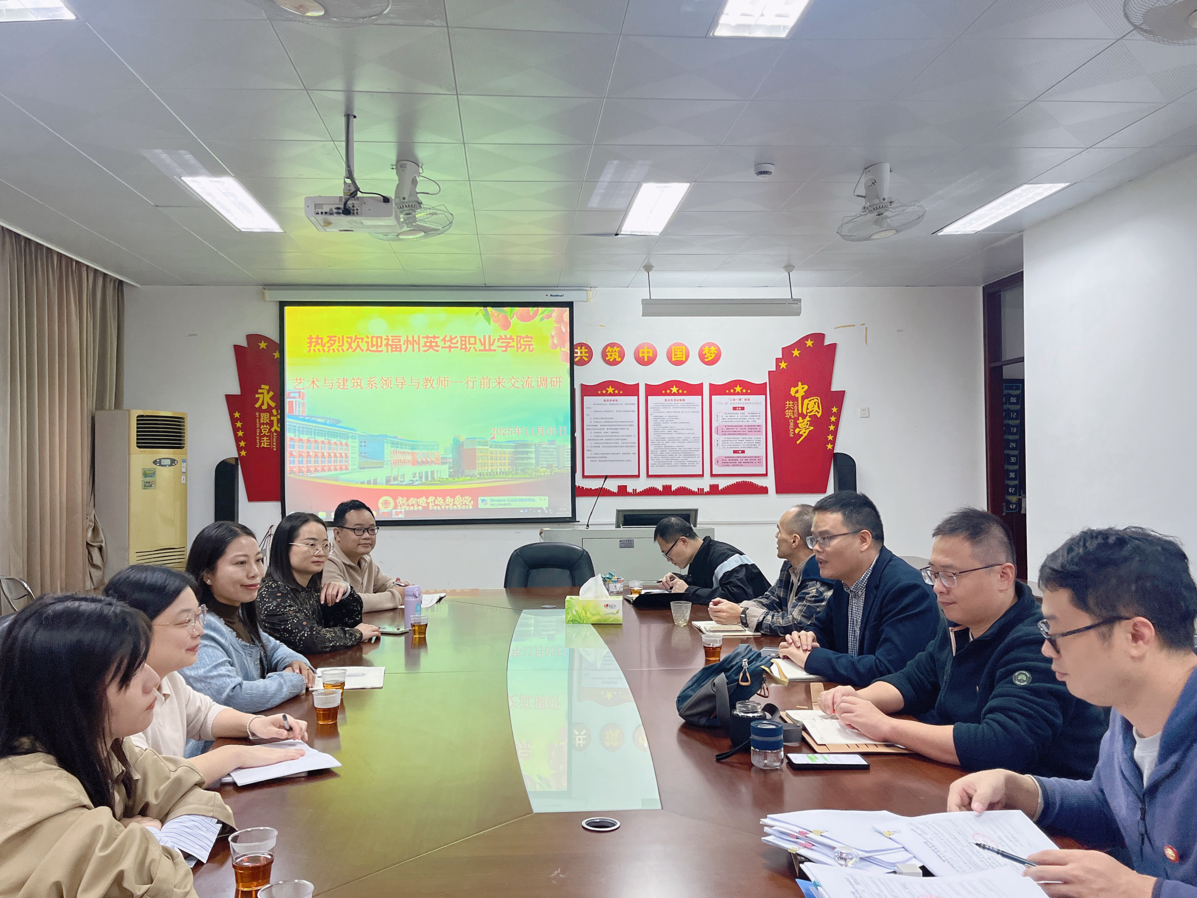 为深化教育教学改革,提升专业建设与人才培养质量,11月5日,福州英华职业学院艺术与建筑系副主任王展华带领建筑工程教研室骨干教师,赴福州职业技术学院开展交流学习活动。此次访问以“借鉴先进经验、推动专业发展”为目标,通过实地参观与座谈研讨,取得了丰硕成果。
