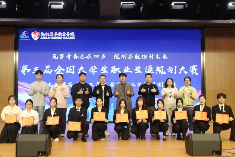 经过激烈角逐,大赛最终评选出成长赛道一等奖1名、二等奖2名、三等奖3名及优秀奖若干名;就业赛道一等奖1名、二等奖1名;评委嘉宾为获奖选手颁发荣誉证书并合影留念。