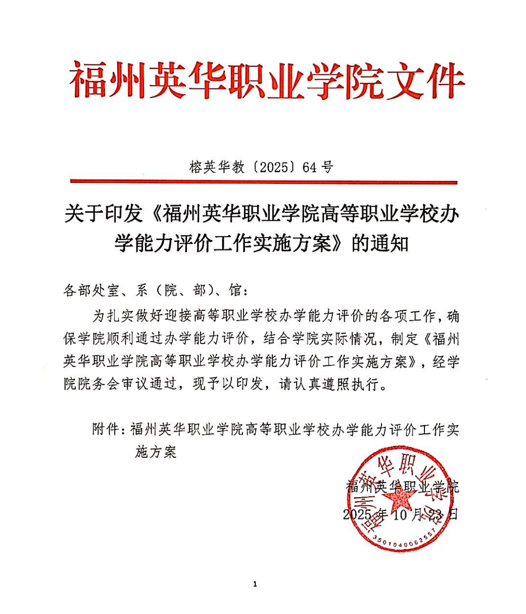 福州英华职业学院高等职业学校办学能力评价工作实施方案.pd